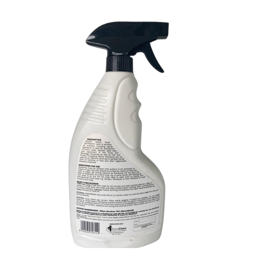 An alcohol based hand and hard surface sanitizer, containing emollients and softeners so as to not dry out hands.