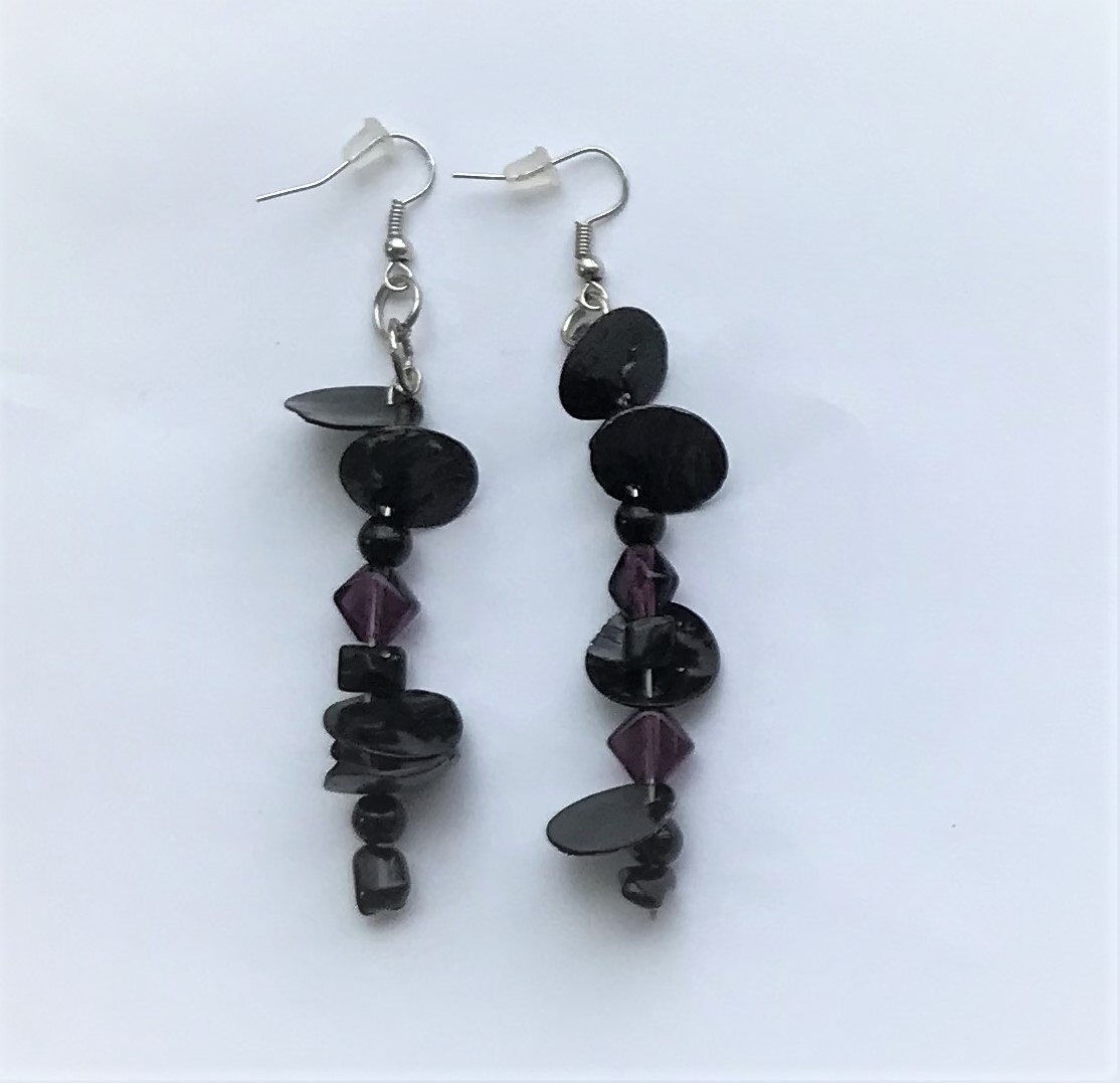 Black Violet. One of a Kind. Handmade earrings made by local craftsmen. Ladies pour their love for design into these beautiful creations that we can wear today.