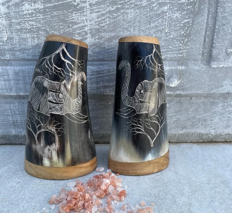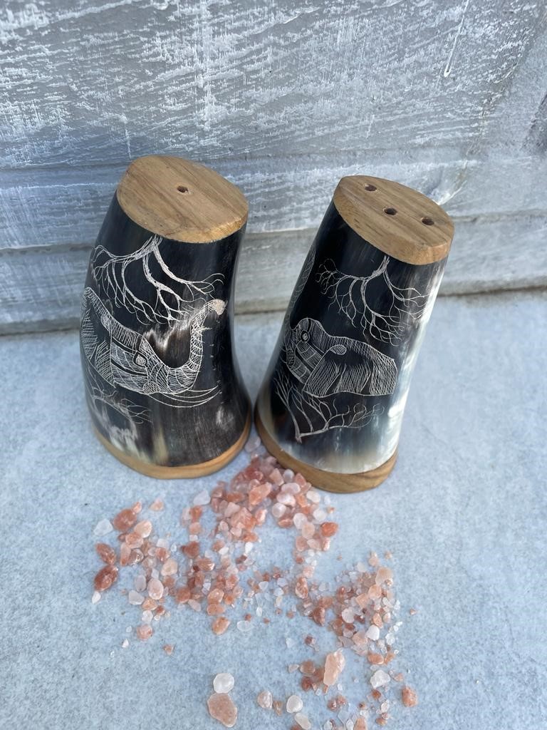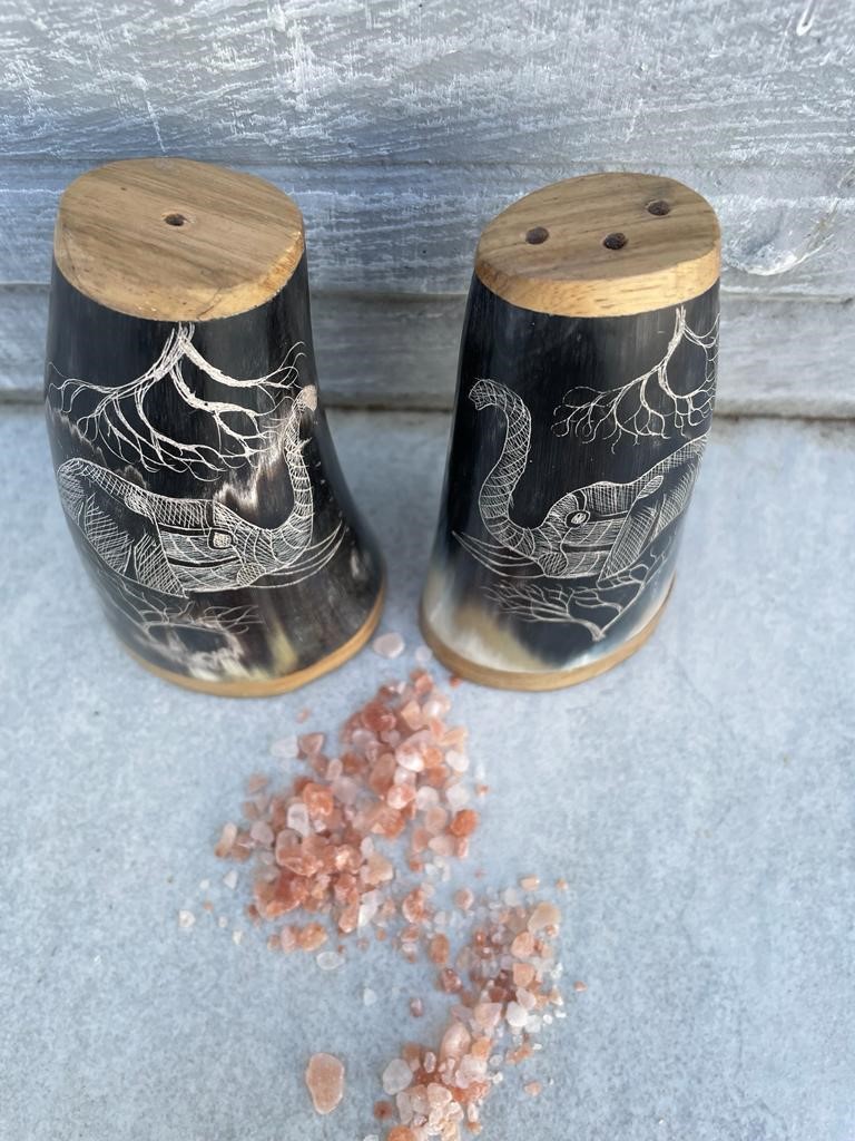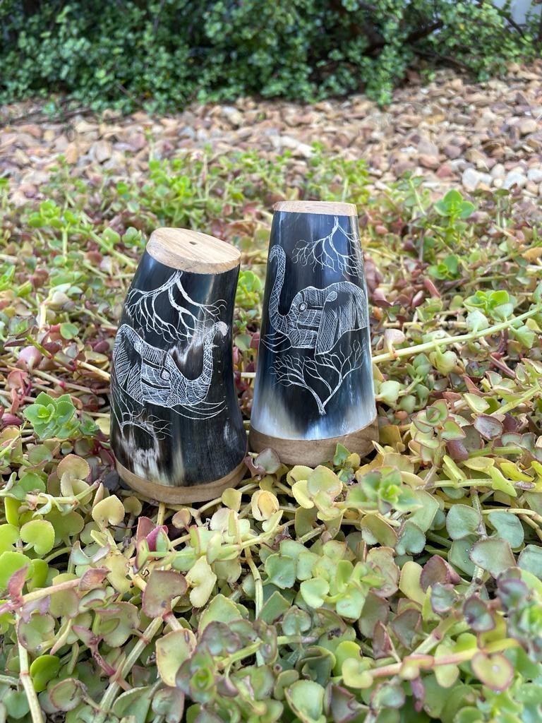 African print Salt & Pepper shakers. Elephant head design.