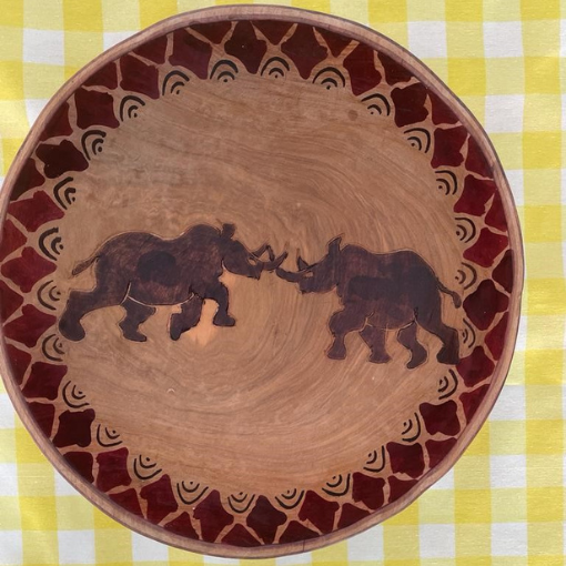 / Rhino Engraved Wooden Bowl